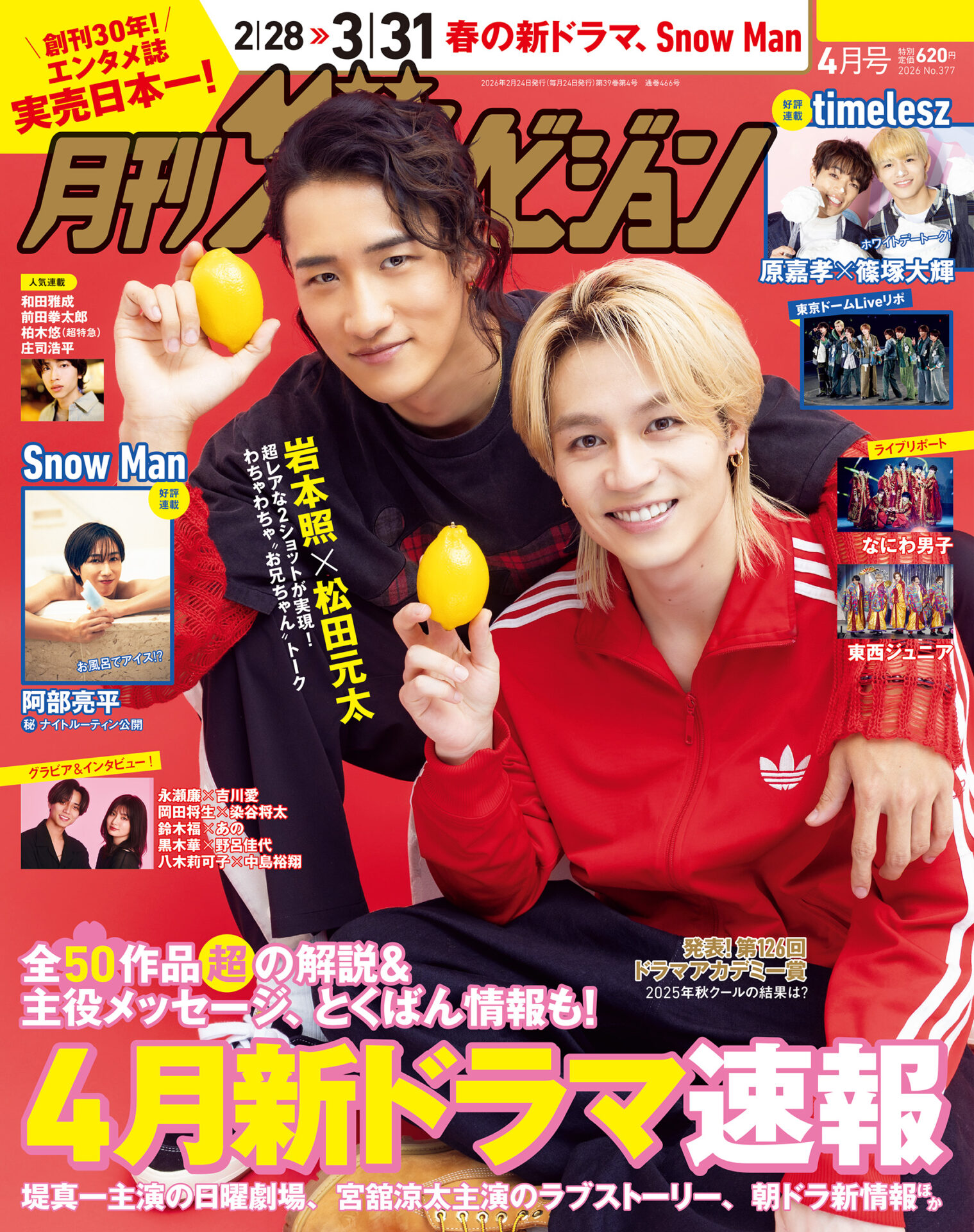2月24日発売「月刊ザテレビジョン 4月号」表紙: 岩...